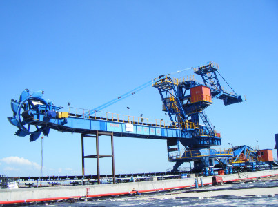 臂式斗輪堆取料機可實現(xiàn)跨越料堆,堆取礦石、原煤等多種散狀物料,實現(xiàn)倉儲物料連續(xù)作業(yè)的大型裝卸設備。主要應用于電力、冶金、煤炭、建材、港口和化工等行業(yè)的強調倉儲沒有混勻要求的條形儲料場。