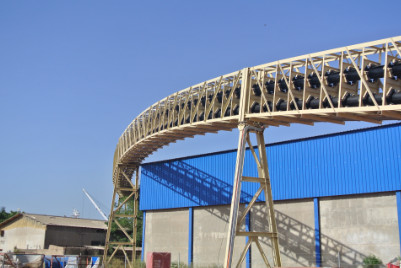 圓管帶式輸送機是傳統(tǒng)帶式輸送機的升級產(chǎn)品,具有不受空間和角度限制及完全封閉高環(huán)保性能的特點。隨著江蘇永鋼集團48°大傾角水平轉(zhuǎn)彎圓管帶式輸送機、寶鋼圓管輸送系統(tǒng)以及塞內(nèi)加爾GCO圓管帶式輸送系統(tǒng)等多個項目相繼投產(chǎn)使用,我公司已擁有一整套成熟的、具有自主知識產(chǎn)權(quán)和專利的圓管帶式輸送機技術(shù),可設(shè)計和制造管徑為Φ100~Φ650mm系列產(chǎn)品。