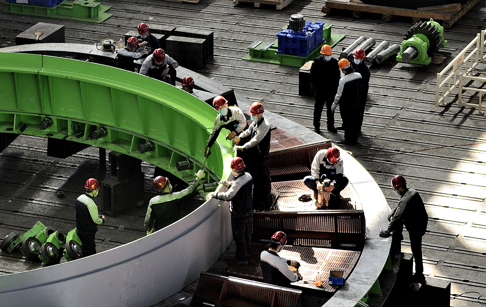 北方重工裝配車間環(huán)冷機(jī)裝配現(xiàn)場(chǎng)。(資料片)